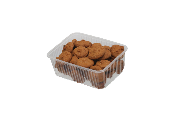 Zloženie: pšeničná múka, cukor, stolový margarín [rastlinné tuky (palmové) rastlinný olej (repkový), pitná voda, jedlá soľ (0,25%) emulgátory: mono- a diglyceridy mastných kyselín a slnečnicový lecitín, konzervačná látka: E200, regulátor kyslosti: E330] ovsené vločky, hrozienka, vaječná melanž (vajcia 99%,voda, konzervačná látka: E202, regulátor kyslosti: E330), ražná múka, škorica, kypriaca látka: hydrogenuhličitan sodný, aróma ethylvanilín, jedlá soľ.